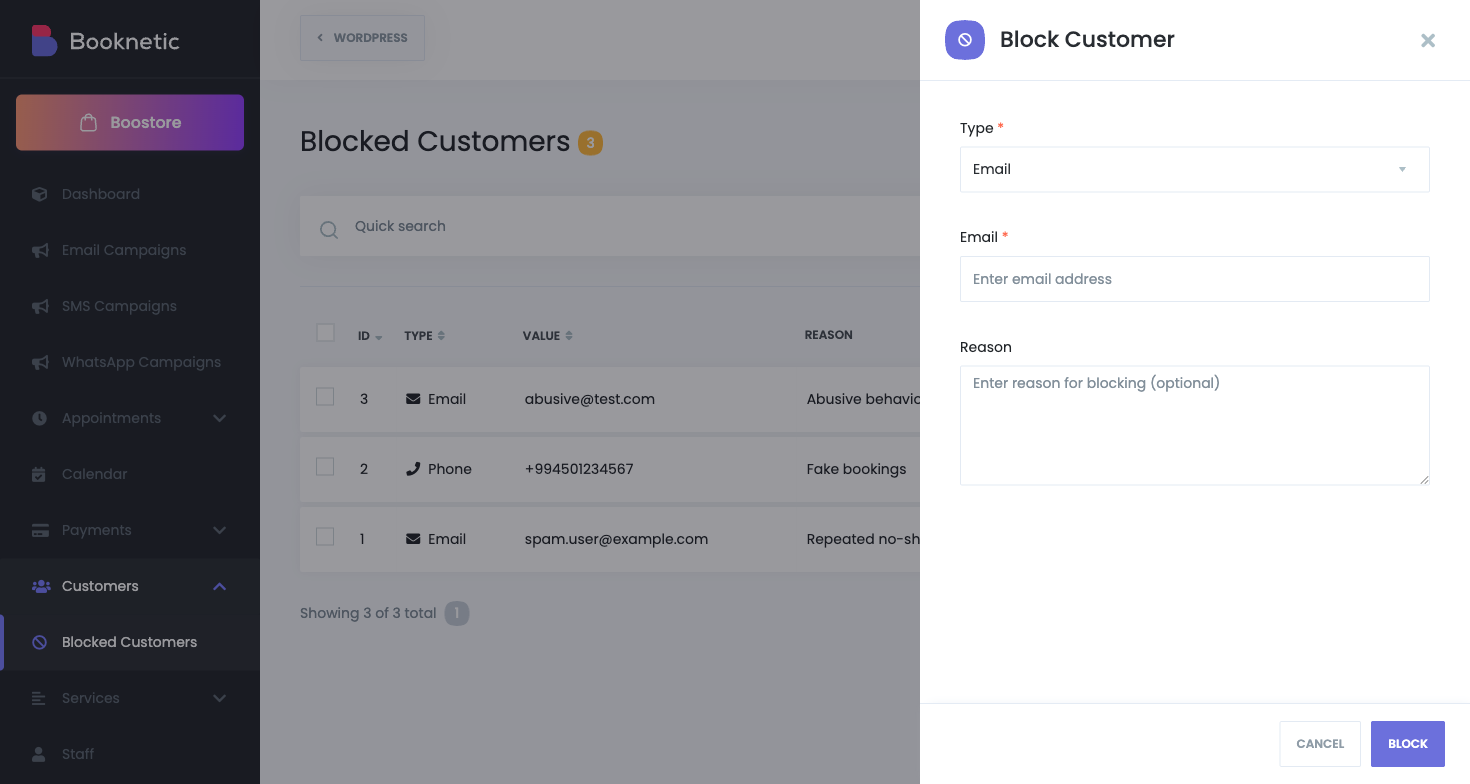 - Booknetic prüft diese Liste während der Buchungsvalidierung.