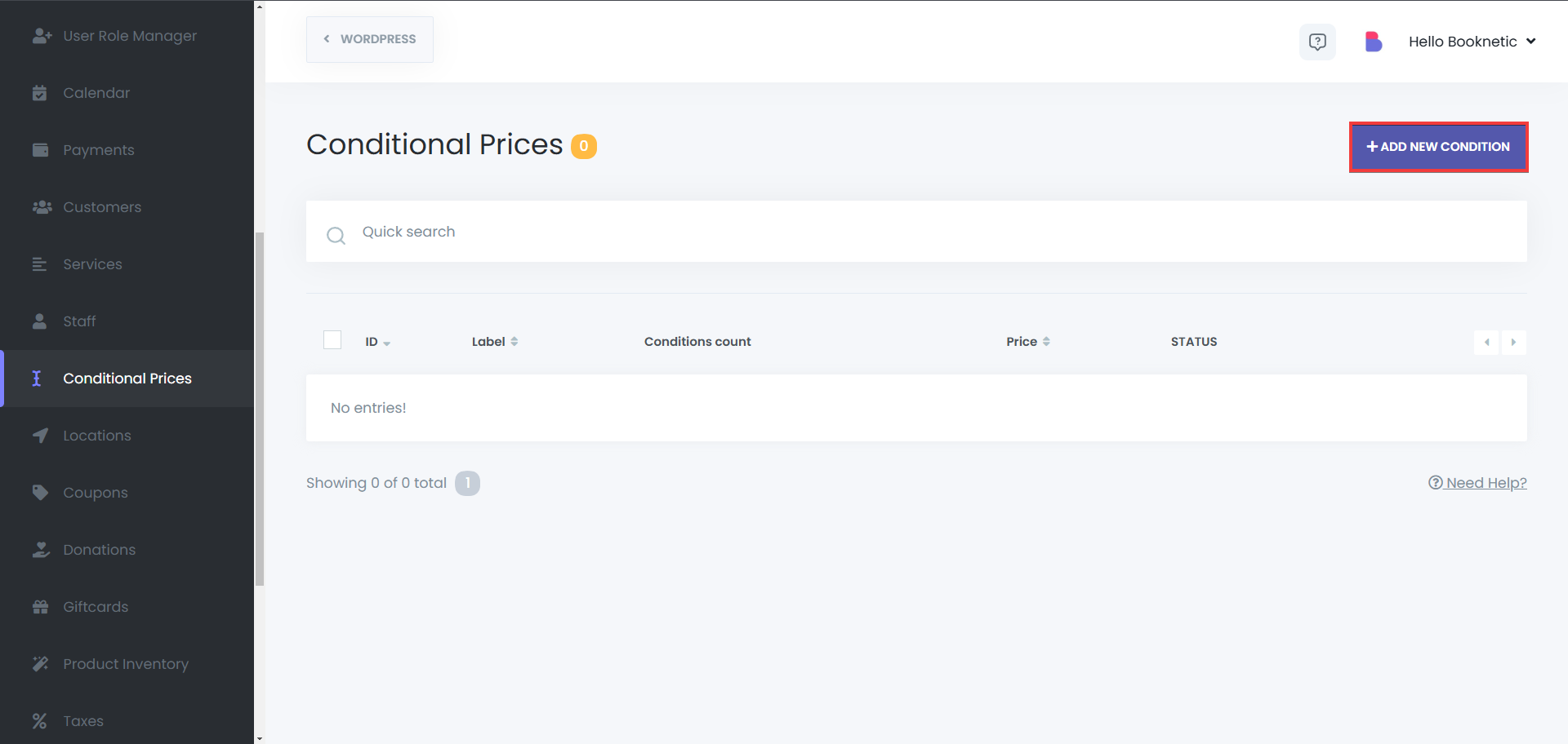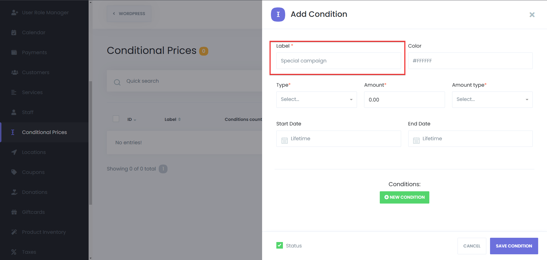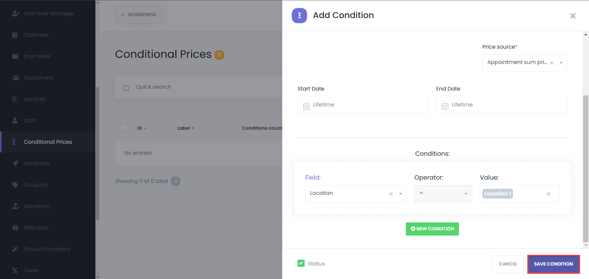 - Service Extra: Set conditions for additional services or extras (e.g., discounted prices when a specific add-on is selected).