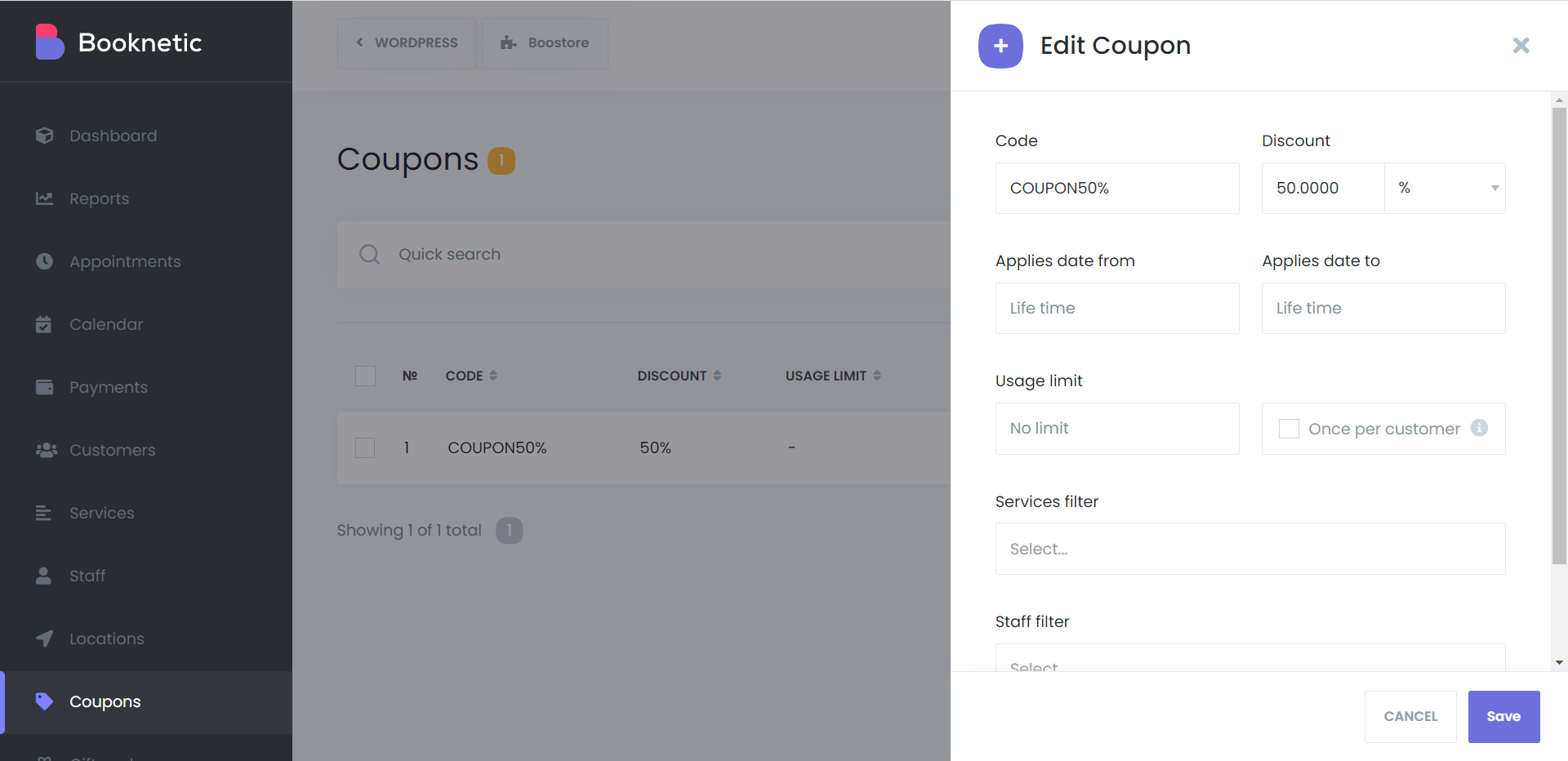 Coupons module of Booknetic. Multi-purpose Appointment Booking Plugin For Wordpress.