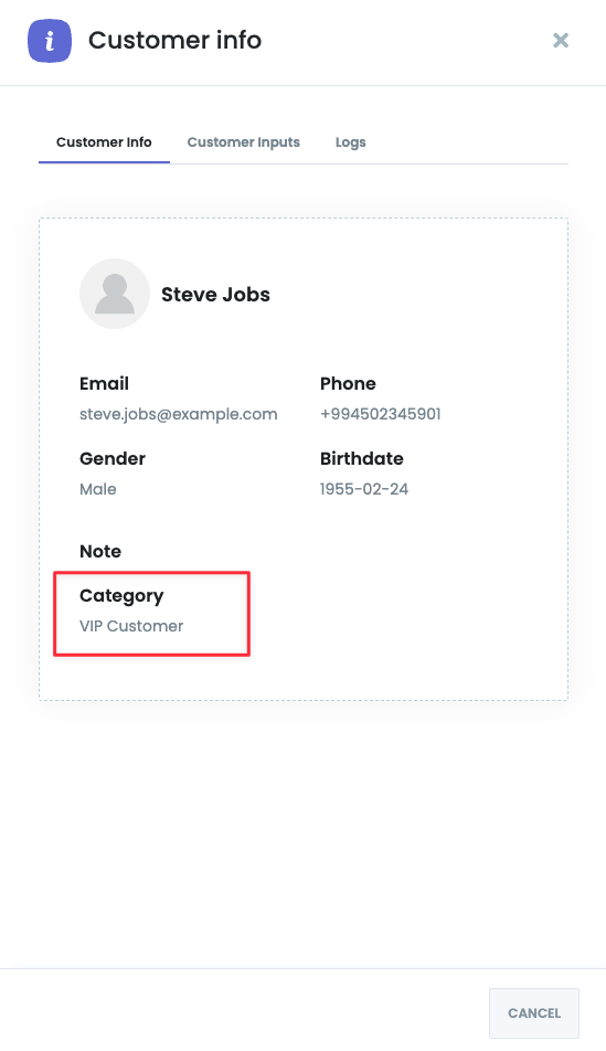 This allows you to instantly see each customer’s assigned category while browsing or managing customers.