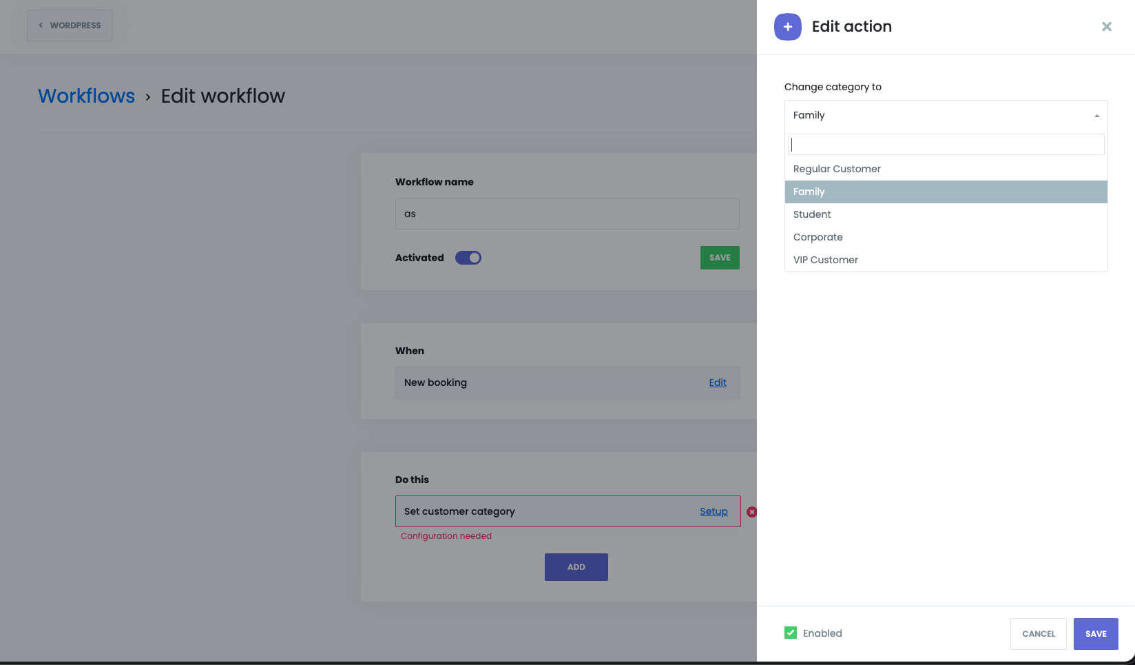 Customer Categories are fully integrated into Booknetic’s Workflow Automation system.