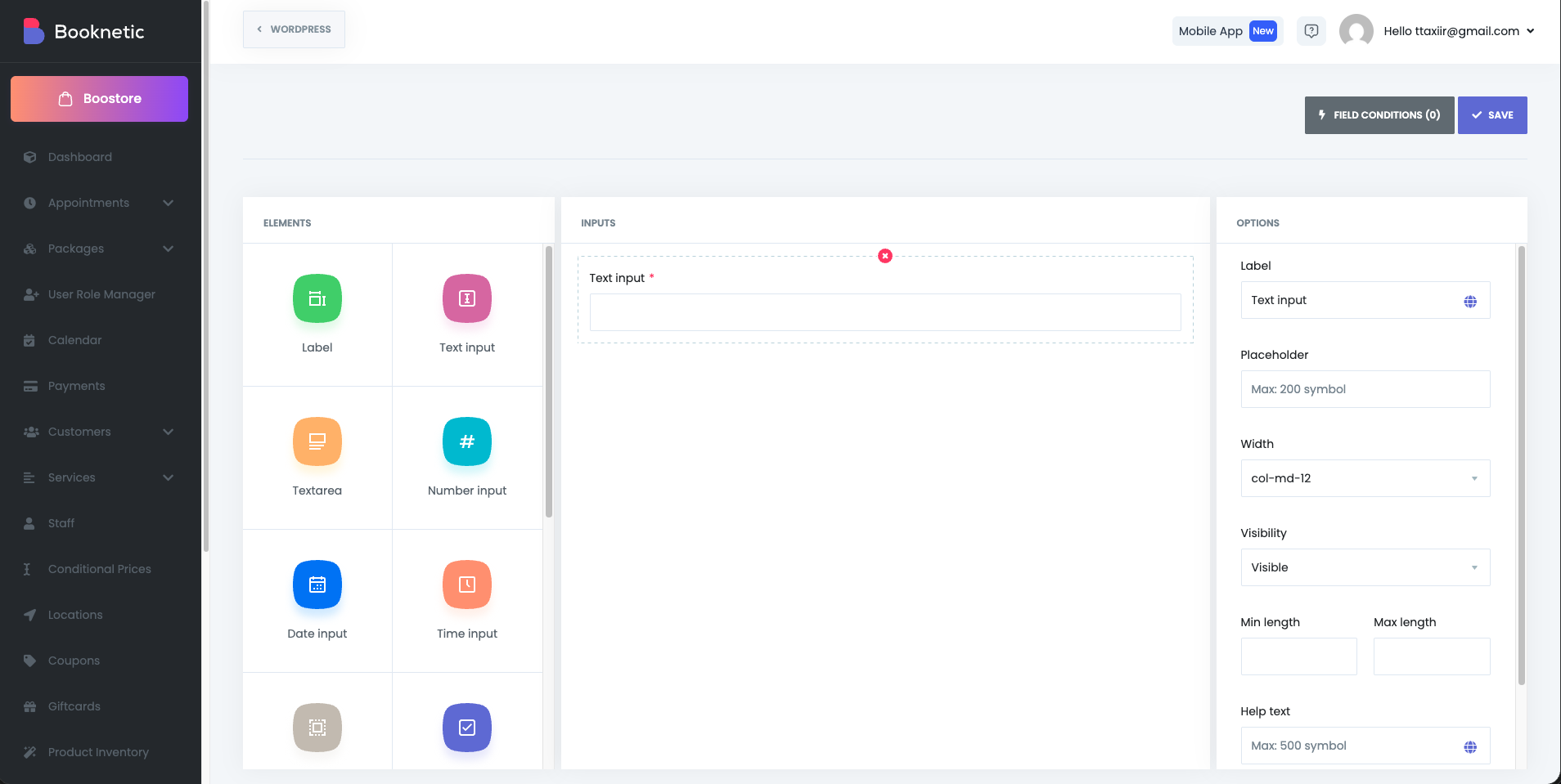 The Customer Fields feature in Booknetic allows administrators to create and customize dynamic customer information collection forms that appear in the customer profile. This feature enables businesses to gather additional customer data beyond standard fields, with full control over form elements, validation, visibility, and field conditions.