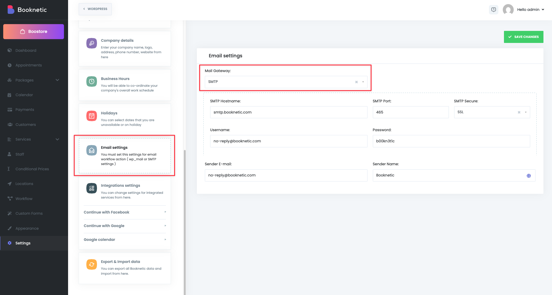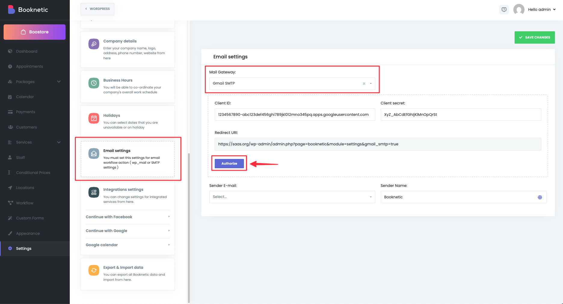 Booknetic supports Gmail SMTP via OAuth 2.0 for secure email delivery.