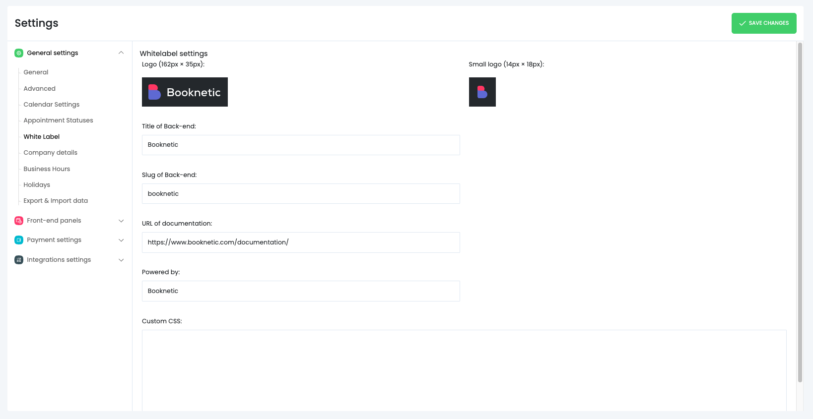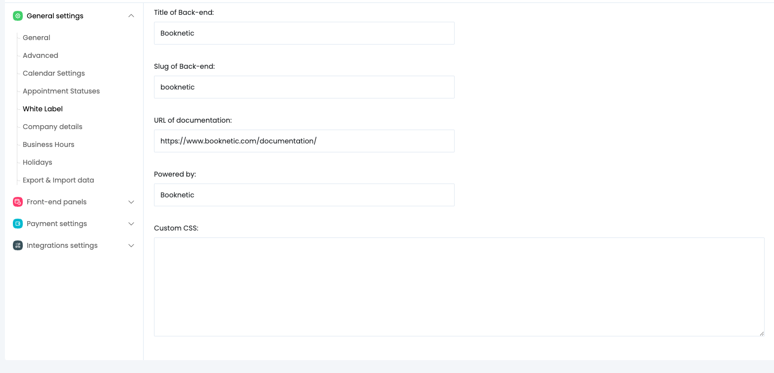 Learn how to fully rebrand Booknetic using the White-Labeling Add-On. Replace logos, titles, URLs, documentation links, and apply custom CSS to present Booknetic as your own product.