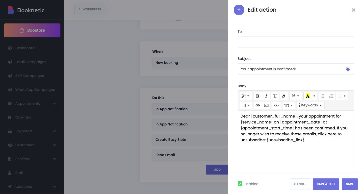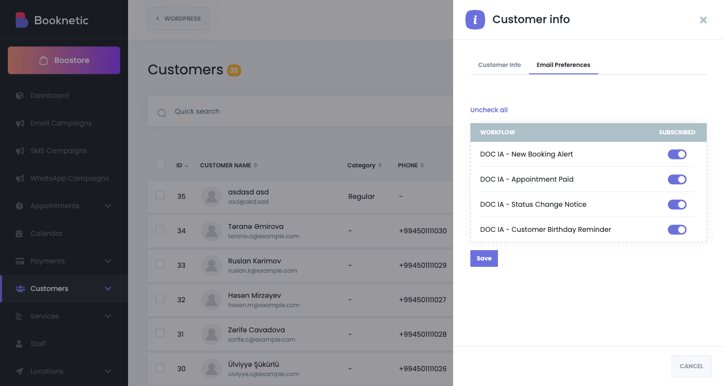- Cuando Booknetic ejecuta acciones de correo, los workflows no suscritos se omiten para ese cliente.